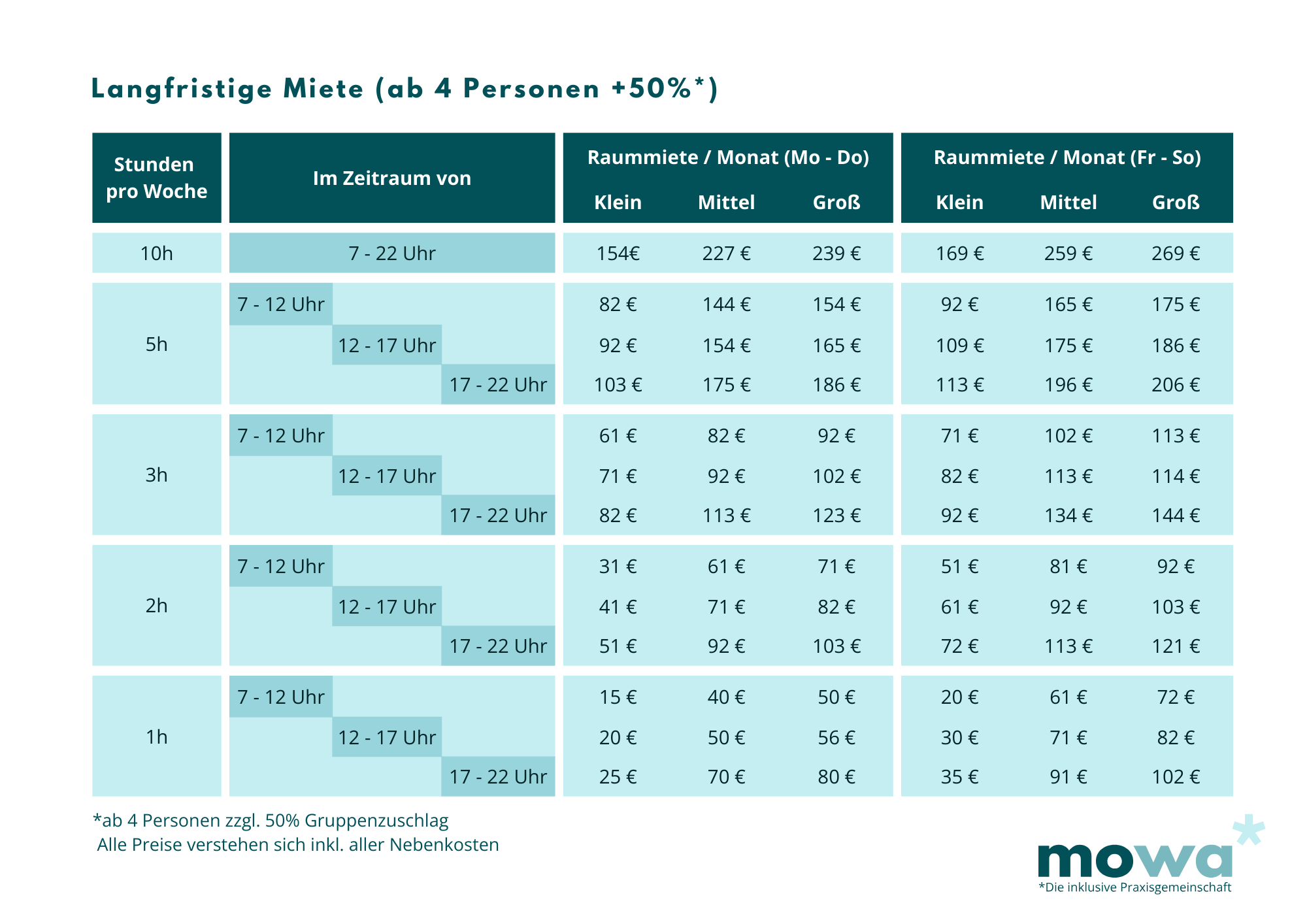 Finde die passende Miete für dich und die Bedürfnisse deiner Klient*innen.